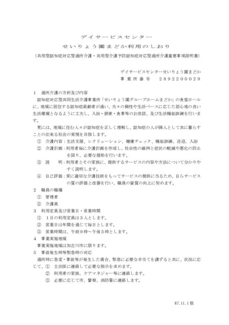 重要事項説明書(認知症デイまどか)
